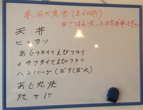 ホワイトボードに書かれたメニューは何の気取りもない文字(笑)