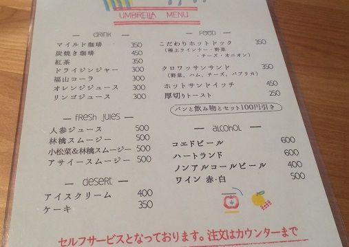 入り口に貼ってあったメニュー