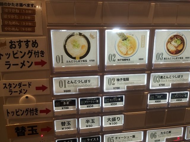 とんこつしぼり、柚子塩麺、黒とんこつしぼりの3種類