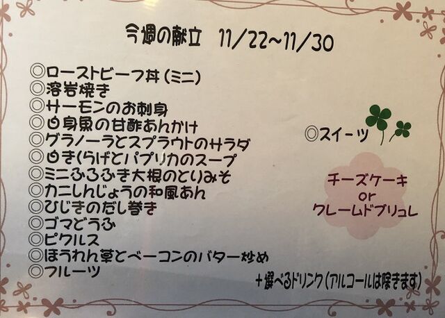 (その他のメニュー内容は前回のブログを参照して下さい)