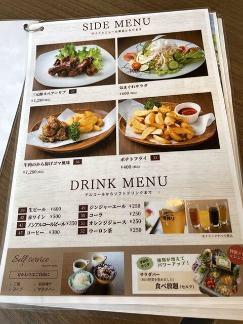 食事とドリンクメニューが載っています