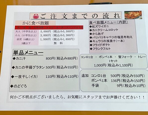 カニ汁など別料金のものもあるので気を付けてね