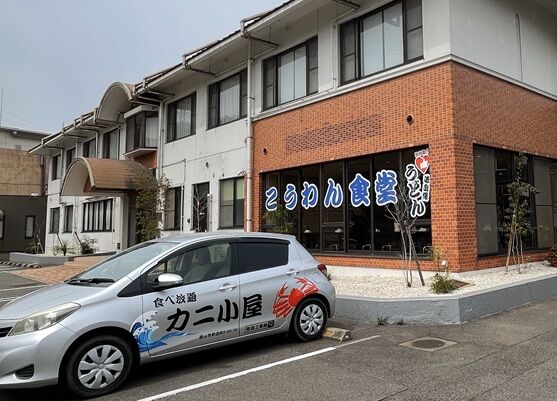 「カニ小屋」と書かれた車